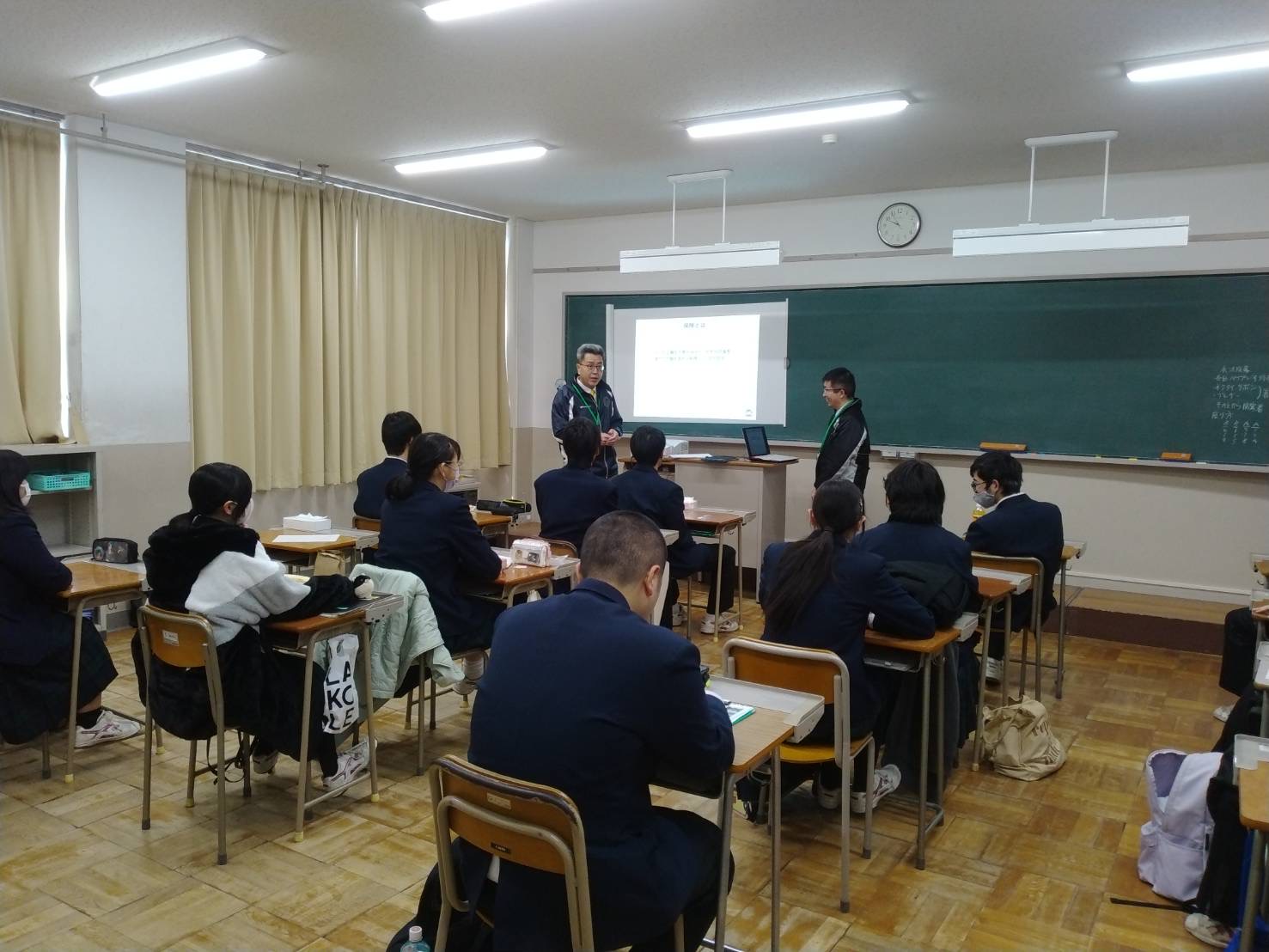 2026年2月24日、小矢部市内の高校において弊社社長が高校生出前講座を行いました。